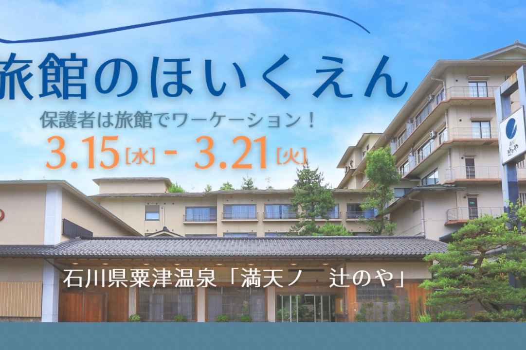 HOIKU株式会社は、H.I.S.ホテルホールディングス株式会社が運営する「満天ノ 辻のや」(住所:石川県小松市湯上町い18)と連携し、2023年3月15日から21日の間、粟津温泉初の試みとなる「旅館のほいくえん」を「満天ノ 辻のや」旅館で開園いたしました。
